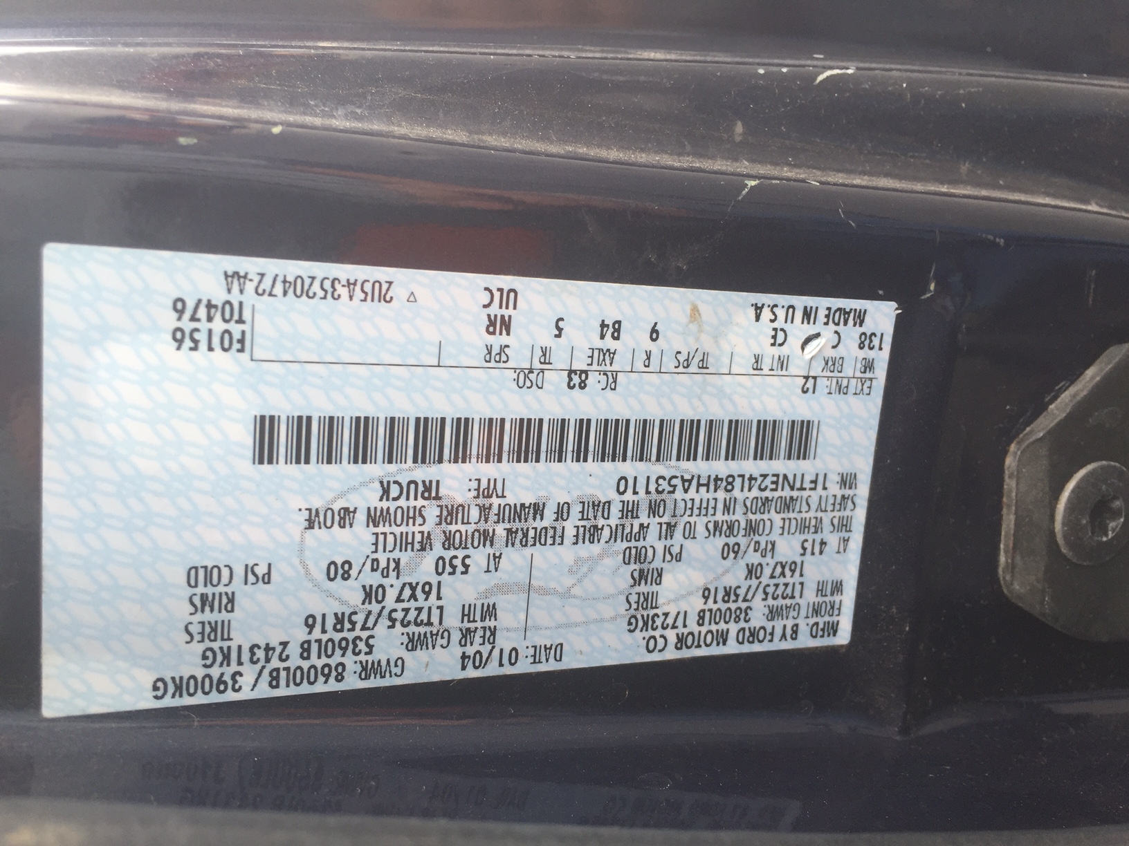 VIN: 1FTNE24L84HA53110