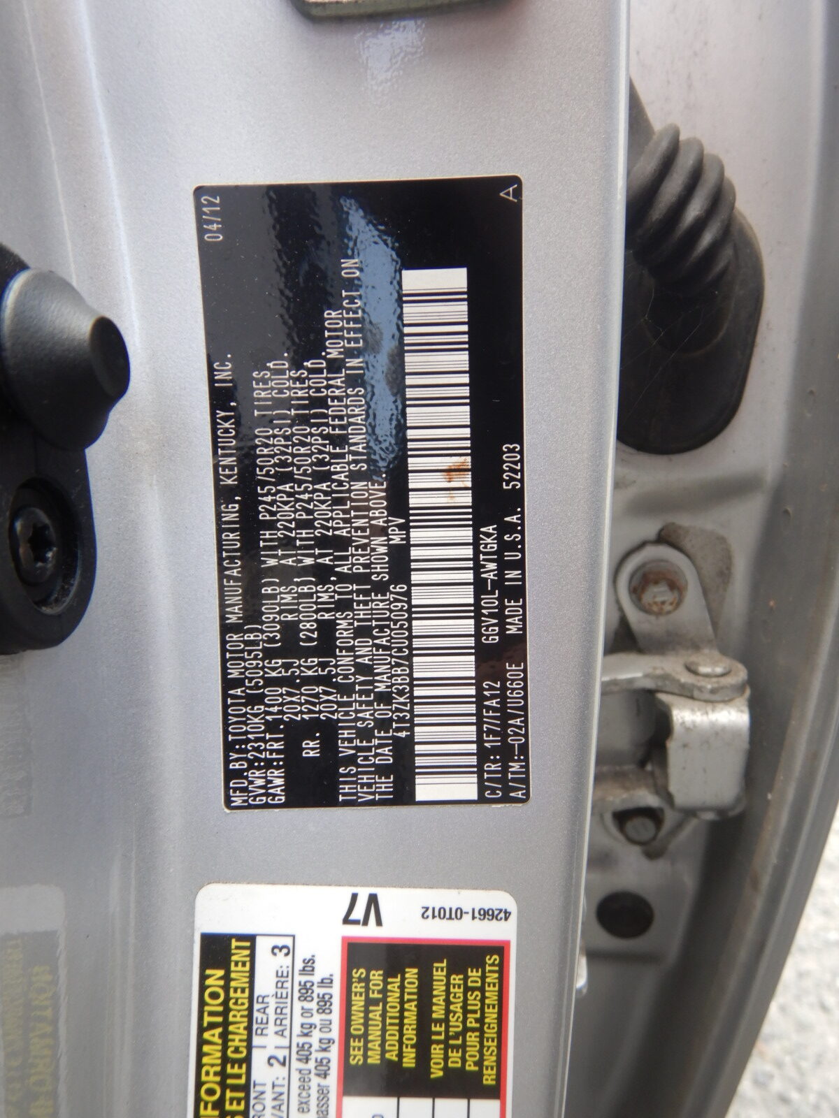 Descripción para Toyota Venza, Gris, 2012 (20129029)