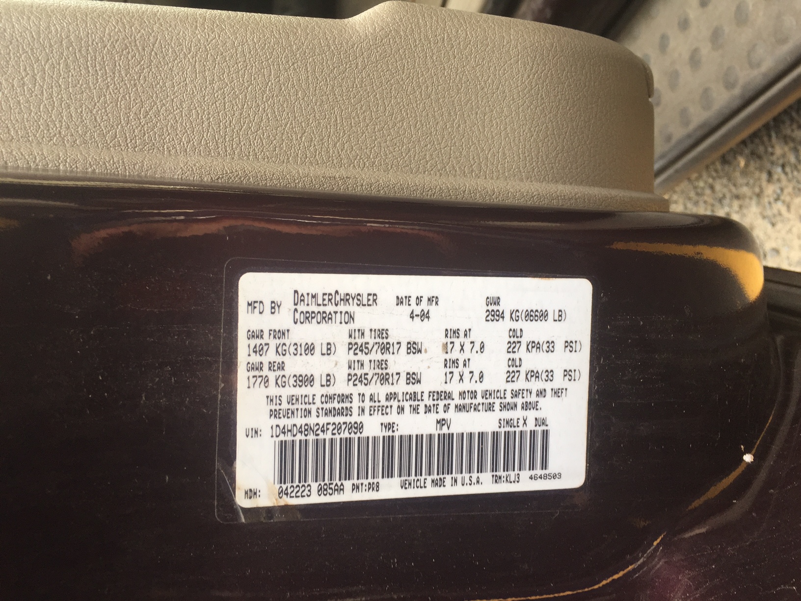 VIN: 1D4HD48N24F207090