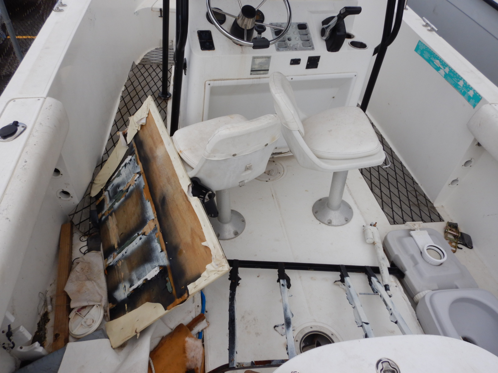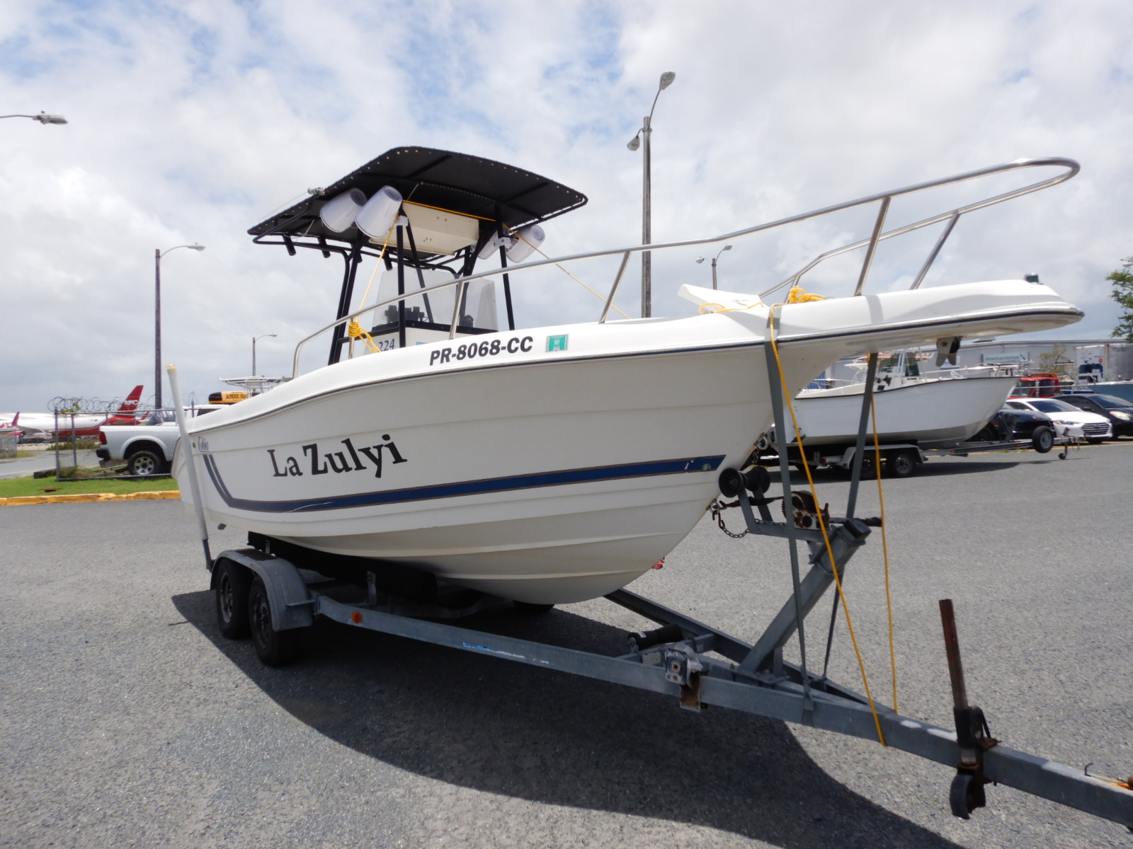 Comments: Several small scratches, Center Console and panel loose or broken. Included 1 Yamaha Four Stroke 200 HP engine and 1996 EZ Loader Boat Trailer with 2 axel. Engines maybe need parts changes and maintenance, this does not guarantee that they are operational.